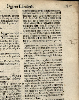 The book also has a mark on the section of Queen Elizabeth that deals with the earthquake in Herefordshire February 17, 1571: